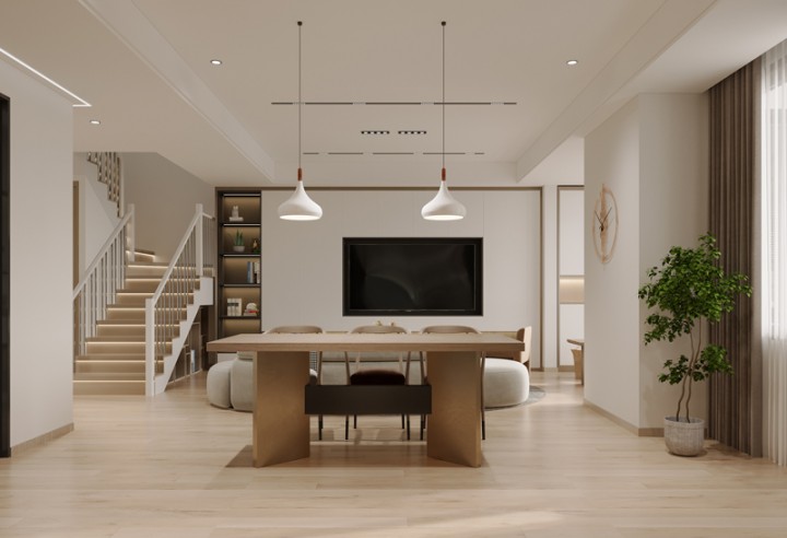 设计理念:居住者崇尚简约舒适的生活方式,安宁静谧,纯粹干净。整体风格以木色和白色为基底,营造一种有调性的美,追求舒适和谐的审美。但在简洁的基础下,仍将设计上升到了一个更高的艺术层面,即探求事物的本质